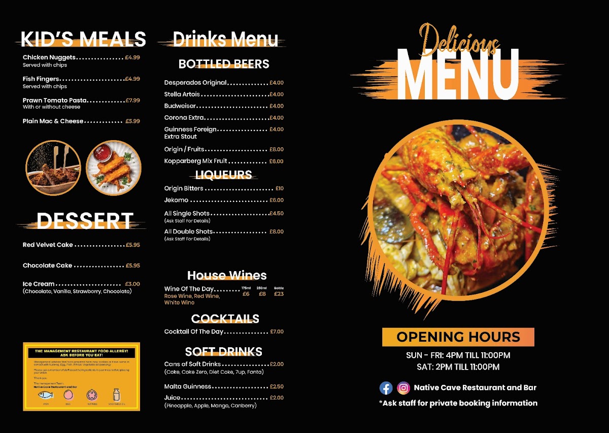 Overall, Native Cave Restaurant And Bar delivers a vibrant and diverse menu, perfect for both casual dining and special occasions, with something for every palate.